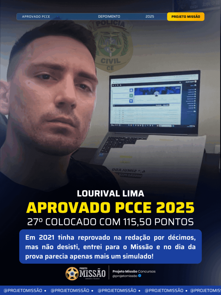 Meu nome é Lourival e sou hoje o 27° colocado geral no concurso PCCE-OIP 2025, indo para o TAF.